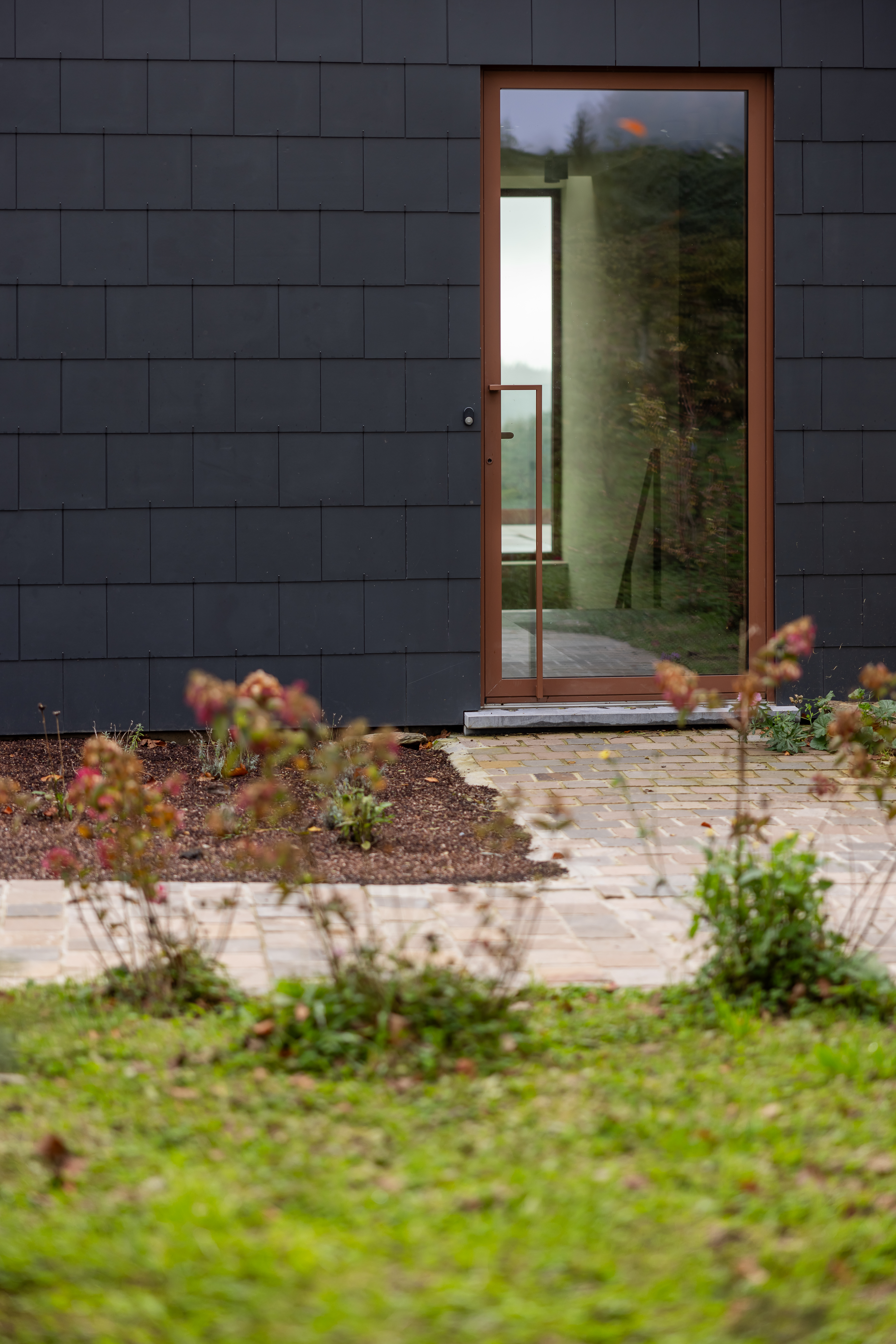 La porte d’entrée, les châssis et la façade forment un ensemble et doivent donc être parfaitement assortis. Vous pouvez dès lors vous écarter des standards pour la taille de votre porte d’entrée. Inutile de vous en tenir aux dimensions d’une porte classiques de 211,5 sur 93 cm. Une porte plus imposante peut donner un cachet supplémentaire à votre habitation. Pour les maisons plus compactes ou les façades plus étroites, il est tout à fait possible d’adapter la largeur et la hauteur de la porte d’entrée.